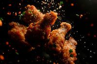 Een opwindend samenspel van heerlijke, krokante stukjes kip die dansen in de lucht en omhuld zijn met een vleugje specerijen. De sappige bruining en pittige details springen meteen in het oog. Dit beeldschone festijn is perfect voor in de keuken, waar het de eetlust opwekt en de verwachting wekt van een gezamenlijke maaltijd.