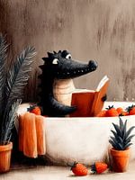 Koop de illustratie Krokodil neemt bad van JBJart Justyna Jaszke op canvas, aluminium dibond, (ingelijste) fotoprint, behang en ArtFrame, op maat geprint in Fine-Art kwaliteit.