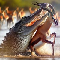 Een krokodil kan zich heel lang stil schuil houden onder water op zijn ogen na en dan ineens totaal onverwacht uithalen naar een prooi dat in het water staat zoals hier.