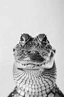 Dit zwart-wit portret van een krokodil toont de indrukwekkende textuur en ruwe details van de huid en benadrukt de rauwe kracht en fascinerende aard van dit prehistorische roofdier. Dit kunstwerk is ideaal voor liefhebbers van natuurfotografie en decoratieve kunst en brengt een vleugje wildheid en opwinding in je interieur.