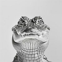 Dit zwart-wit portret van een krokodil toont de indrukwekkende textuur en ruwe details van de huid en benadrukt de rauwe kracht en fascinerende aard van dit prehistorische roofdier. Dit kunstwerk is ideaal voor liefhebbers van natuurfotografie en decoratieve kunst en brengt een vleugje wildheid en opwinding in je interieur.