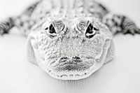 Dit zwart-wit portret van een krokodil toont de indrukwekkende textuur en ruwe details van de huid en benadrukt de rauwe kracht en fascinerende aard van dit prehistorische roofdier. Dit kunstwerk is ideaal voor liefhebbers van natuurfotografie en decoratieve kunst en brengt een vleugje wildheid en opwinding in je interieur.