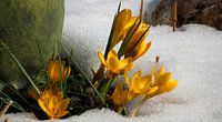 gelbe krokusse im schnee