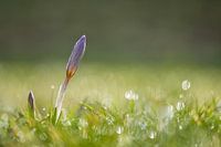 De ochtend dauw zorgt voor mooie druppels op de krokus en op het gras.