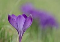 Eenzame krokus voor een groepje anderen. Door de geringe scherptediepte zijn deze niet meer als zodanig te onderscheiden. Foto is geschoten met een Nikon D7100 met 105 mm Macro-objectief.