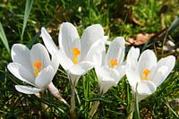 Witte krokussen in de zon midden maart 2022 in domein Kiewit in Hasselt.