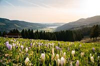 Krokussen op de Hündle met uitzicht op de Alpsee