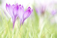 Krokussen in het gras. Bewerkt met Adobe Lightroom Foto gemaakt met een Nikon D7100 en 105 macro-objectief.