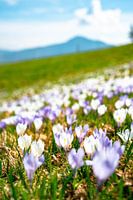 Krokusweide op de Mittagberg met uitzicht op de Grünten