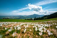 Krokusweide op de Mittagberg met uitzicht op de Oberallgäu en de Grüntenberg