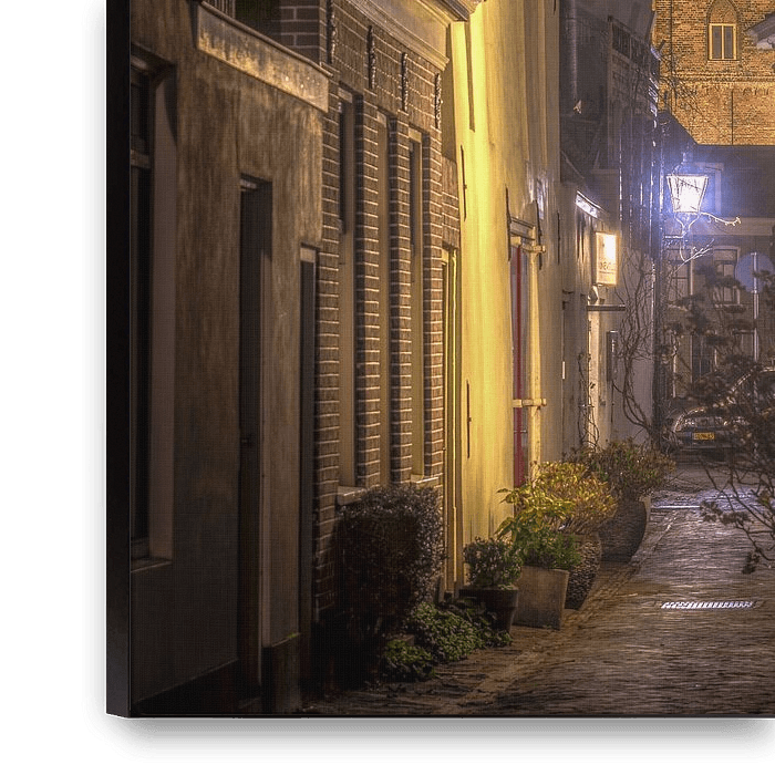 Koop dit stilleven Kromme elleboogsteeg Weesp - Weesp in Beeld van Joris van Kesteren op canvas, aluminium dibond, (ingelijste) fotoprint, behang en ArtFrame, op maat geprint in Fine-Art kwaliteit.