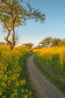 Pad en boom tussen koolzaad