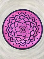 Deze aquarel toont een mandala van de Sahasrara, de kroon of ook kroonchakra. Het is de toegang tot je hogere zelf, tot je bewustzijn, je visioenen en je verbinding met de spiritualiteit.