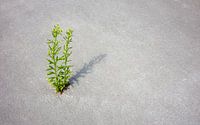 Een typisch beeld van Minimalisme. Dit kleine plantje heeft het voor elkaar gekregen om te groeien en te leven in een klein gaatje in een betonnen stoep.