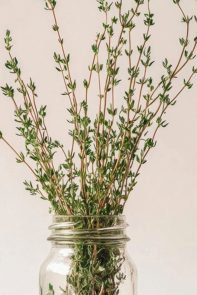 Een fris boeket van delicate kruidentakjes rijst op uit een heldere glazen schaal die natuurlijkheid en eenvoud perfect benadrukt. De zachte groene tinten stralen rust en frisheid uit, ideaal voor de keuken of eetkamer, waar ze een levendige en uitnodigende sfeer creëren. Een vleugje natuur dat de sfeer verlevendigt!
