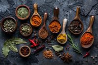 Deze artistieke afbeelding van kruiden in een harmonieus arrangement brengt de diversiteit en schoonheid van de culinaire wereld bij je thuis. Perfect voor fijnproevers en kookliefhebbers die een vleugje elegantie en kleur willen toevoegen aan hun keuken. Een stilleven dat zowel inspireert als decoreert.