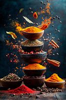 Een kleurrijk spektakel van specerijen ontvouwt zich, met gouden hoogten van kurkuma en rode paprika die glinsteren in contrast met aardse tonen. Delicate kaneelstokjes en aromatische laurierblaadjes lijken te dansen in de lucht. Dit levendige kunstwerk is ideaal voor in de keuken en nodigt je uit om je zintuigen te prikkelen en…