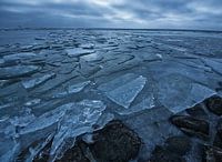 Kruiend ijs langs de afsluitdijk. Deze foto's zijn gemaakt op 17 februari bij Breezand. De korte winter is afgelopen.
