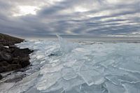 Tussen Lelystad en Enkhuizen maakt de Houtribdijk scheiding tussen Markermeer en IJsselmeer. Tegen de westkant van de dijk hoopt het ijs zich op door de dooi en de sterke westenwind.