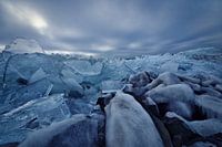 Kruiend ijs langs de afsluitdijk. Deze foto's zijn gemaakt op 17 februari bij Breezand. De korte winter is afgelopen.