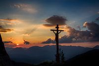 Zonsondergang bij het wegkruis bij de Dammkarhütte.
