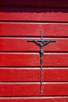 Dit eenvoudige kruisbeeld op een rode achtergrond trof ik in 2015 aan op een begraafplaats in Bonifacio, in het zuiden van Corsica.