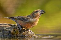 De kruisbek, één van mijn favoriete vogels die we hebben. erg schuw en zijn snel weer weg als ze je zien. Op een warme dag besloot dit mooie mannetje om te komen drinken.