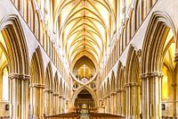 De elegante schaarbogen van Wells Cathedral rijzen op als een middeleeuws kunstwerk, een slimme oplossing uit de 14e eeuw die schoonheid en stabiliteit verenigt.