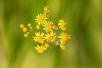 Kruiskruid (Scenecio sp.) gefotografeerd van bovenaf, zo dat je de stengeltjes niet meer ziet, daar komen de bloemen extra los van de ondergrond. Er is niet geflitst of met lichtbronnen gewerkt anders dan de zon, die behoorlijk recht van boven kwam (daardoor is er geen schaduw te zien).