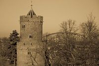 Kruittoren in Kronenburgerpark, Nijmegen. De waalbrug in de achtergrond.