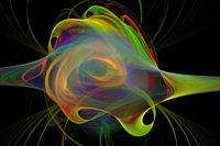 Fractal Art geel groen krullende figuur, aan beide zijden uitgerekt.