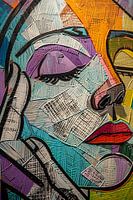 Dit opvallende kunstwerk is een explosie van kleuren en vormen, geïnspireerd door de kubistische stijl. Een vrouwengezicht, gevangen in een moment van rust, wordt weergegeven met gedurfde lijnen en levendige tinten. De abstracte compositie nodigt uit tot contemplatie en voegt een vleugje moderne kunst toe aan elke ruimte. Een uniek stuk dat zeker gesprekken zal op gang brengen en een statement zal maken in uw interieur.