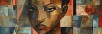 Over ‘Kubistisch portret van een vrouw in warme aardetinten’ van Poster Art Shop