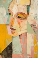 Kubistisch portret van een vrouw in zachtgeel en pastelkleuren - moderne kunst voor stijlvolle interieurs