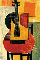 Koop dit abstracte kunstwerk Kubistische Gitaar op een Rode Stoel van Imperial Art House als print op canvas, aluminium dibond, (ingelijste) fotoprint, behang en ArtFrame. Voor jou op maat geprint in Fine-Art kwaliteit.