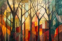 Koop dit abstracte kunstwerk Kubistische Interpretatie van Bomen en Stadsarchitectuur van Art & Soul Creations op canvas, aluminium dibond, (ingelijste) fotoprint, behang en ArtFrame, op maat geprint in Fine-Art kwaliteit.