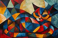 Dit levendige kubistische kattenportret betovert met zijn felle kleuren en dynamische vormen. De geometrische elementen en intense kleurschakeringen drukken op fascinerende wijze de persoonlijkheid van de kat uit. Perfect voor liefhebbers van abstracte kunst en kubisme, zal dit stuk een energieke en stijlvolle touch toevoegen aan elke kamer. Een must-have voor iedereen die van kunst en katten houdt in een unieke combinatie.