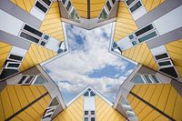 in Rotterdam zijn er kubuswoningen in het geel met een achtergrond van wolken