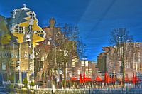 De befaamde Kubuswoningen en het eveneens door Piet Blom ontworpen complex met horeca en woningen aan de Spaansekade weerspiegelen in het licht golvende water van de Oude Haven in Rotterdam. Het geel van de kubussen, het rood van de parasolletjes langs de kade en het blauw van de lucht zorgen voor fraaie primaire kleuraccenten.
