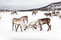 Een prachtige kudde rendieren in het hoge noorden van Noorwegen tijdens onze reis aan het begin van het jaar..