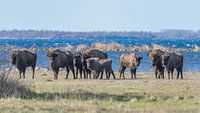 Een kudde Wisenten in natuurgebied De Slikken van de Heen, op Sint Philipsland, in Zeeland in Nederland.