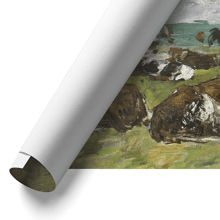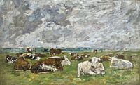 Koop Kudde koeien onder een stormachtige hemel, Eugene Boudin als reproductie op canvas, aluminium dibond, (ingelijste) fotoprint, behang en ArtFrame, op maat geprint in Fine-Art kwaliteit.