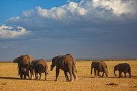 Koop de foto Kudde olifanten van Peter Michel als print op canvas, aluminium dibond, (ingelijste) fotoprint, behang en ArtFrame. Voor jou op maat geprint in Fine-Art kwaliteit.