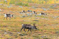 In het hart van Zweeds Lapland, vlakbij het beroemde nationale park Abisko, ontvouwt zich in de herfst een natuurspektakel van zeldzame schoonheid. Tussen goudkleurige berkenbossen, rode bosbesstruiken en het koele blauw van de valbergen zwerven majestueuze rendieren rustig door het uitgestrekte landschap. Onder het opvallende silhouet van de Lapporten - in het Samisch bekend als Čuonjávággi - opent zich een vallei die een poort lijkt naar een andere wereld. Hier, waar de wind de heldere poollucht over de uitgestrekte vlakten voert, ontmoeten stilte, licht en kleur elkaar in perfecte harmonie.