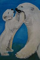 Liebevoll umfasst ein kleiner Eisbär das Gesicht seiner Mutter um sich ein Küsschen zu holen. Acryl und Strukturpaste auf Leinwand. Das Bild " Küsschen Mami - Eisbären" entstand für meine Tochter und ist im Original unverkäuflich. Es wurde mit Acrylfarbe und Strukturpaste auf Leinwand gemalt. Durch die immer hochwertiger…