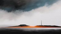 Schilderachtig beeld van het kustlandschap met een abstract, minimalistisch gevoel.....Digitale kunst met behulp van AI-generatie, compositie en beeldverfijning