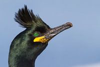 Prachtig portret van een volwassen Kuifaalscholver (Phalacrocorax aristotelis aristotelis). Met opgezette kuif om te imponeren.