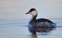 Deze Kuifduiker, in winterkleed, wordt in het Engels Horned Grebe genoemd. In de zomer zien ze er heel anders uit. Ze lijken dan zelfs eerder op een Geoorde Fuut dan op een Kuifduiker.