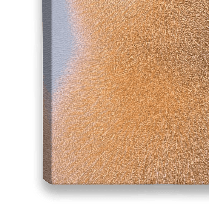 Kuikenschilderij | Fluffy Gaze - Dit dierenschilderij toont een charmant pluizig kuikentje met grote, heldere en expressieve ogen tegen een grijze achtergrond, die met zijn zachte oranje veren elke toeschouwer onmiddellijk voor zich wint.