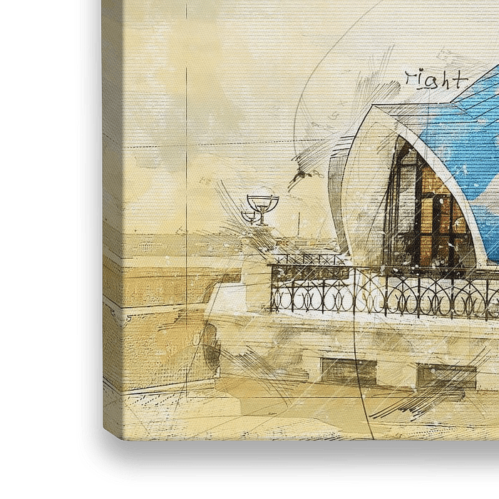 Architectuurschets uit een serie tekeningen van de mooiste en beroemdste gebouwen ter wereld. Gemaakt met potlood en aquarel op papier.